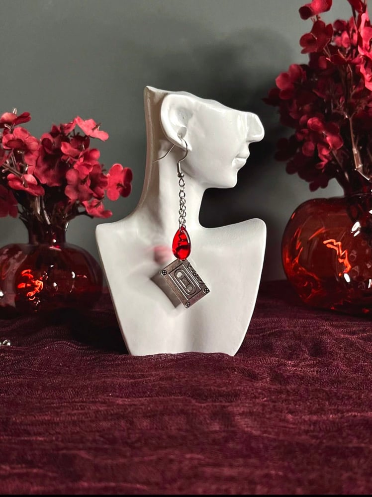 A pair of earrings inspired by the horror movie franchise ‘SAW’